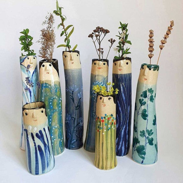 What's not to like about this family of professors? Each vase is carved and hand painted to complete a very unique set. Even without flowers, these vases have a life of their own.